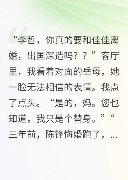 ”他又想来抓我的手。我再次避开。“我不会跟你走的。”我看着他,眼神里没有一丝波澜,
